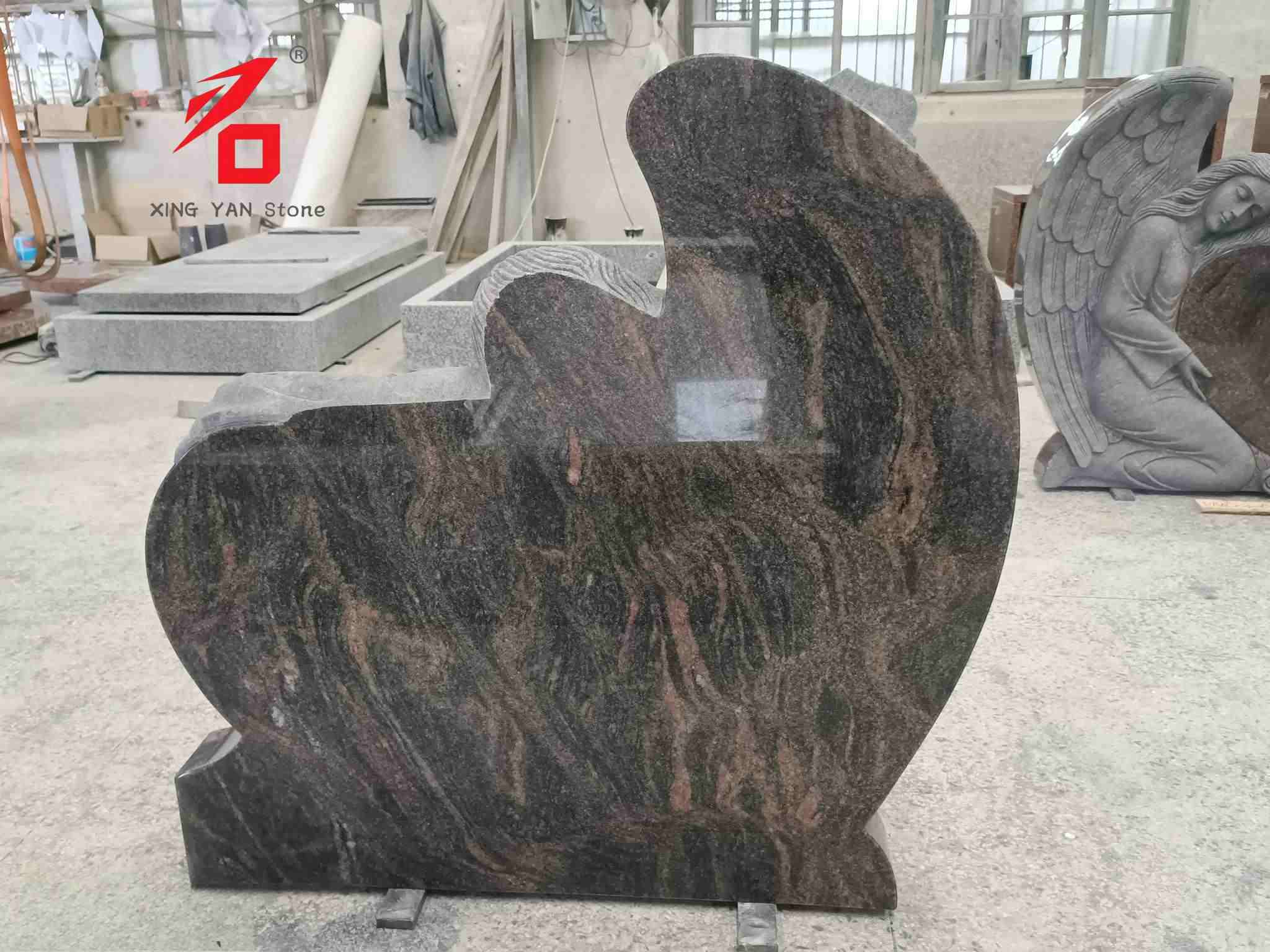 Pamätný náhrobný kameň anjela v tvare srdca z modrej perleťovej žuly