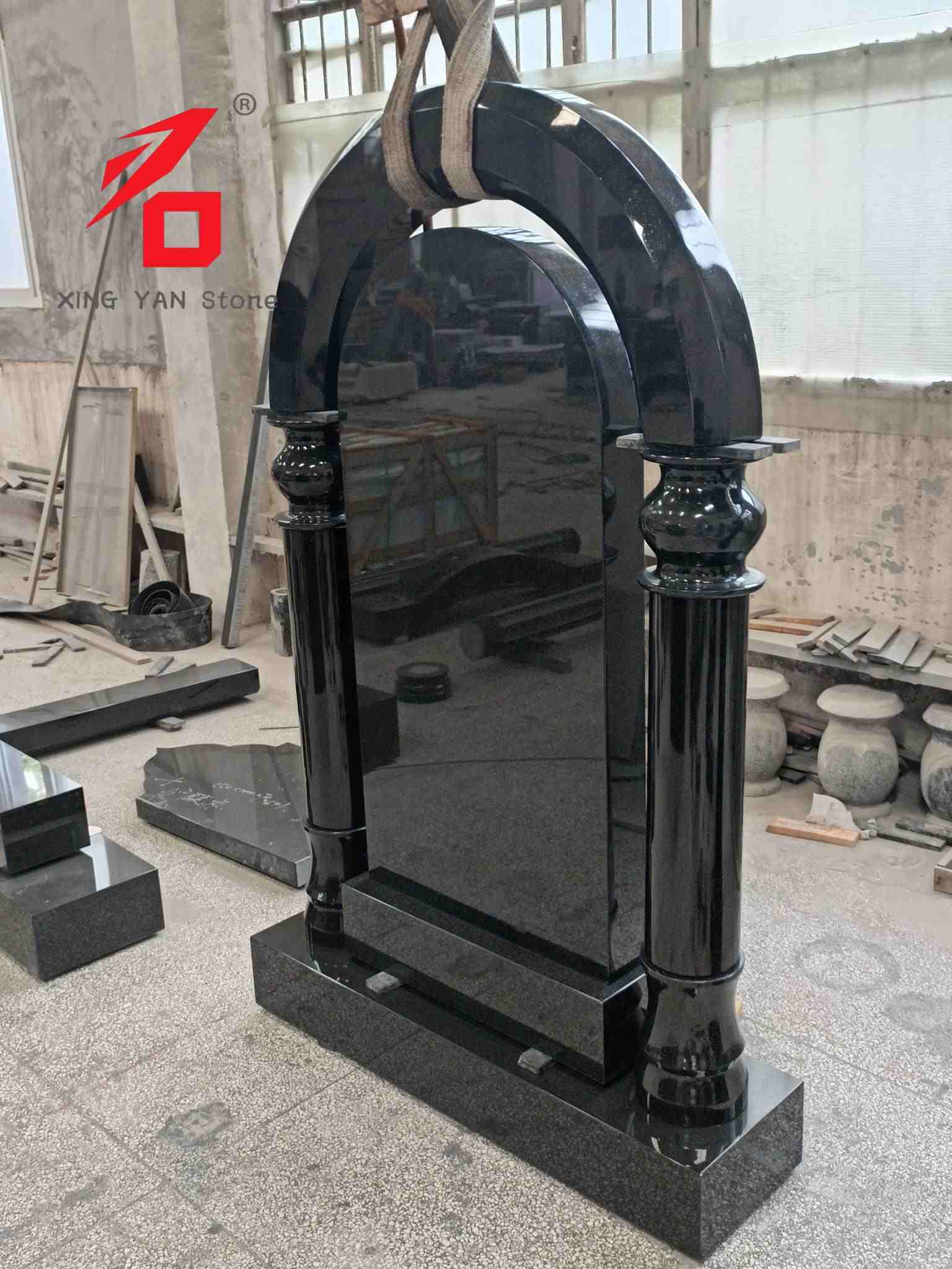 Prispôsobenie veľkosti: Štandardná výška 1,8-2,2 metra (nastaviteľné na požiadanie), šírka základne 0,8-1,2 metra, hrúbka 8-12 cm; podporuje gravírovanie rodinných erbov, mena zosnulých, dátumov narodenia a úmrtia a iného personalizovaného obsahu.