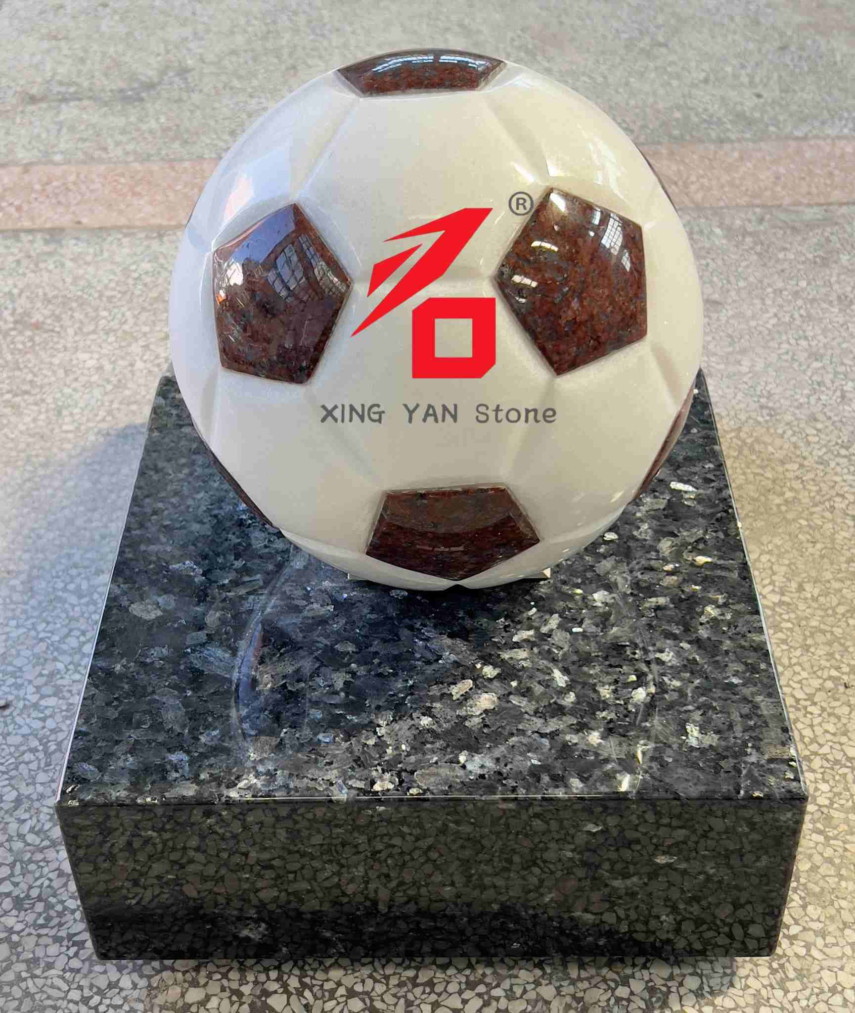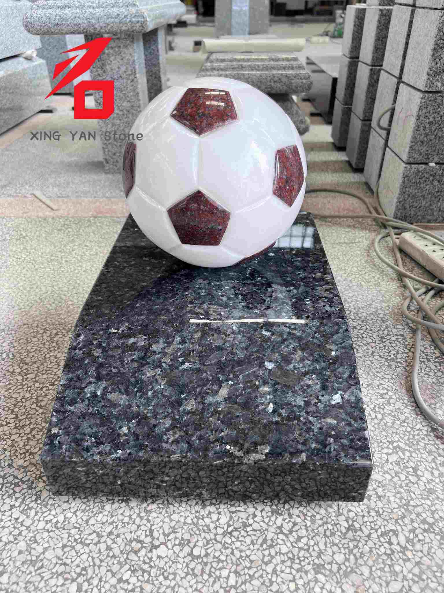 Štýl dizajnu: Dizajn, ktorý je sústredený na futbalovú loptu ako hlavný dizajnový prvok, verne obnovuje klasický vzhľad futbalovej lopty. S výraznými farebnými kontrastmi a trojrozmerným tvarom spája športovú kultúru s kamenosochárskym umením, dokonale spĺňa dekoratívne potreby športovo-tematických prostredí a zároveň predvádza jedinečný umelecký výraz.